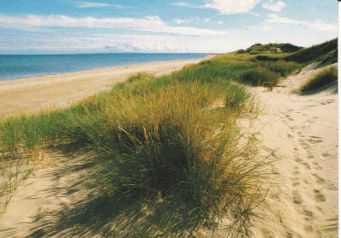 Jeg mindes min sandede barndomsø, med marehalsklitter og gryder, hvor vesterhav synger med skummende sø og bølgerne bruser og syder. |