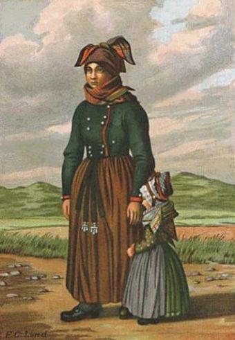 ![]() "En gift Fanøkone i Søndagsdragt" af F.C. Lund. |